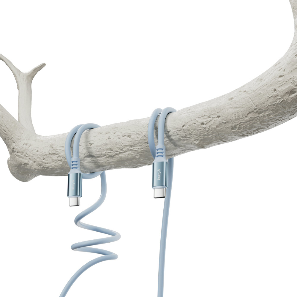 柔らかさとさらさら触感を兼ね備えたシリコン素材を採用。絡みにくく、巻き癖が付きにくいので取り回しのしやすいケーブルです。