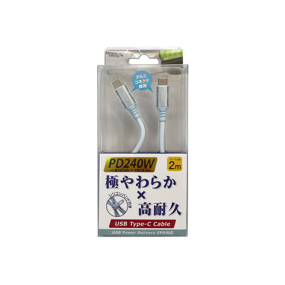アルミコネクタを採用した「極やわらか」高耐久シリコンケーブルです。USB Power Delivery EPR(最大240W)に対応し、大電力が必要な機器への高速充電・データ転送が可能です。