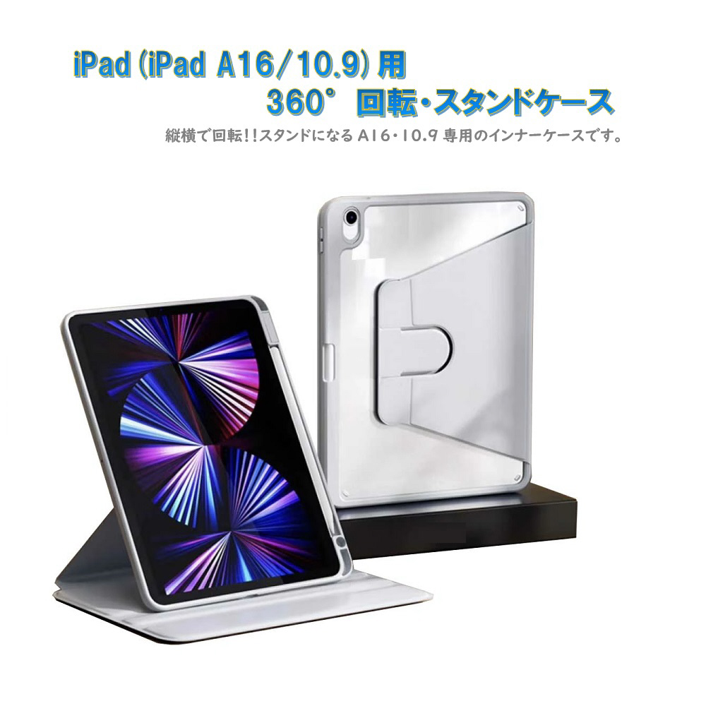 iPad10.9・iPad A16共用の360°回転スタンド・インナーケースです。