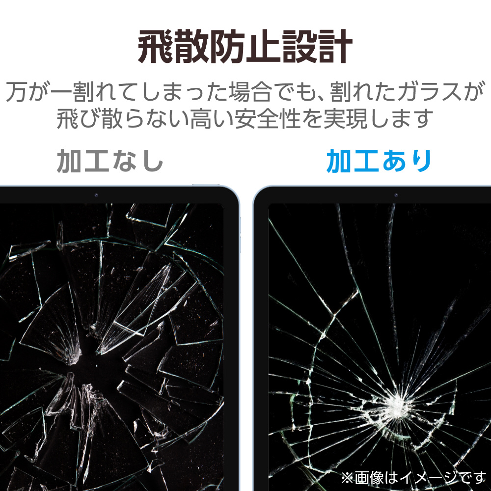 特殊な飛散防止設計により、万一割れてしまった際にも飛散することなく、高い安全性を実現。