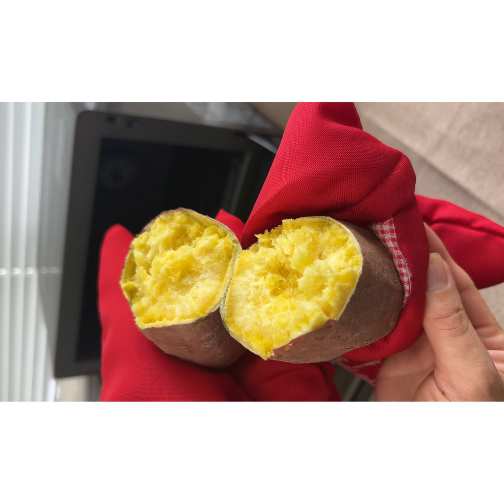 マイクロ波によって食材に含まれている水分が加熱し、焼きいもバッグの中で起こる水蒸気と温かい空気の対流によって芋がムラなく短時間で加熱されます。