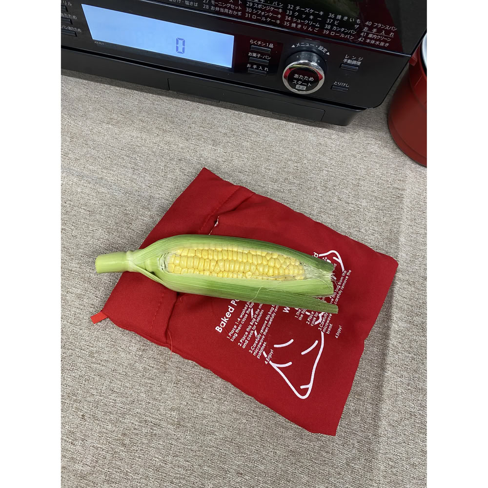 皮付きとうもろこし1本:皮付きとうもろこしをバッグに入れ、500W(約)4分加熱。バッグを裏返して(約)1分加熱。