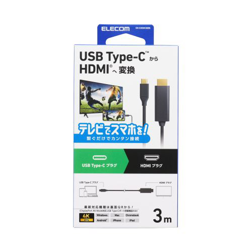 3.0m 映像変換ケーブル USB Type-C-HDMI ミラーリング対応 DH-CHDMI30BK [3m /HDMI⇔Type-C]