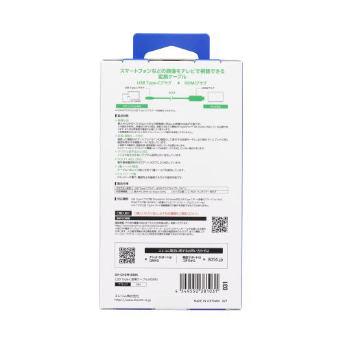 HDMI(R)ポート搭載のディスプレイなどに映像を出力できる変換ケーブルです。USB Type-C(TM)ポート搭載スマートフォンなどの映像信号を、HDMIポート搭載ディスプレイなどに映像を出力することができ、画面複製と画面拡張に対応しています。