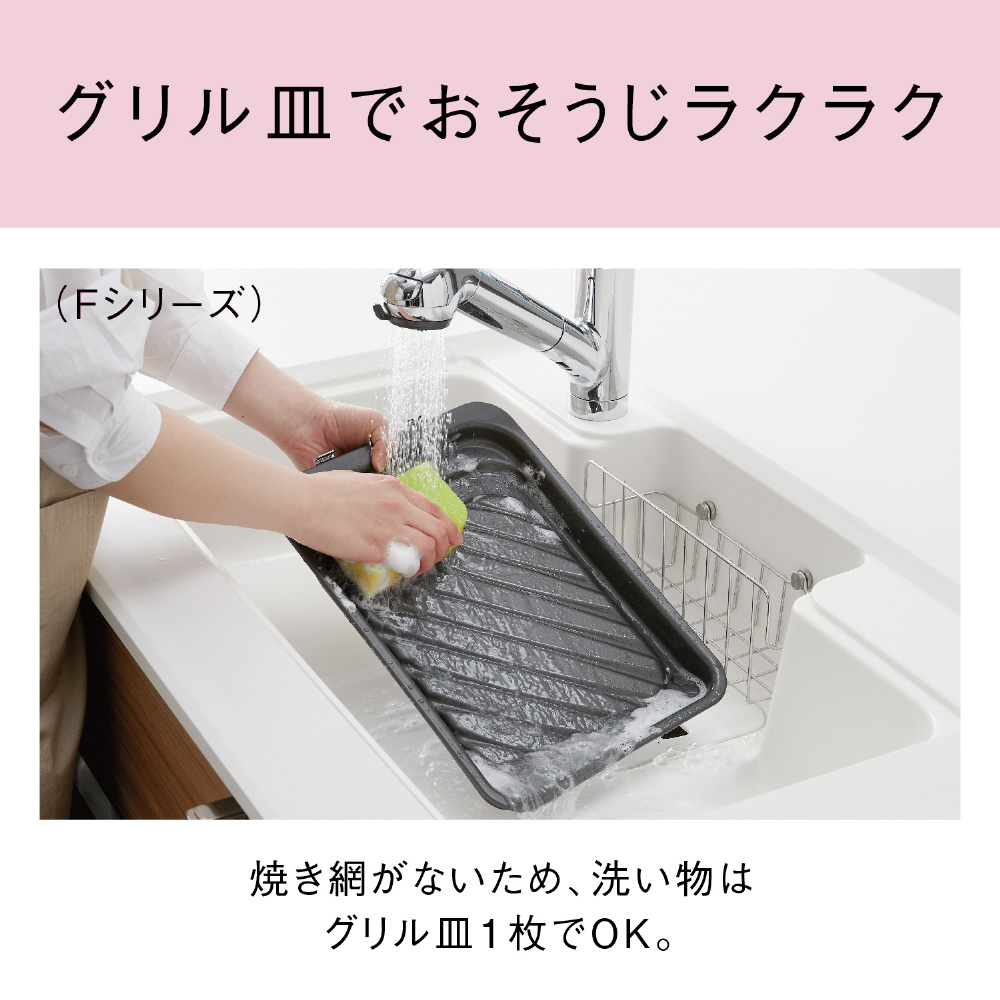 3.グリルは焼き網がなくお手入れ簡単 自動メニュー搭載のグリル皿タイプ