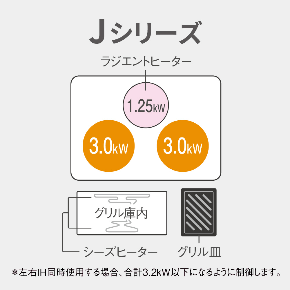 仕様1 左右IH:10段階 後ろラジエント:3段階