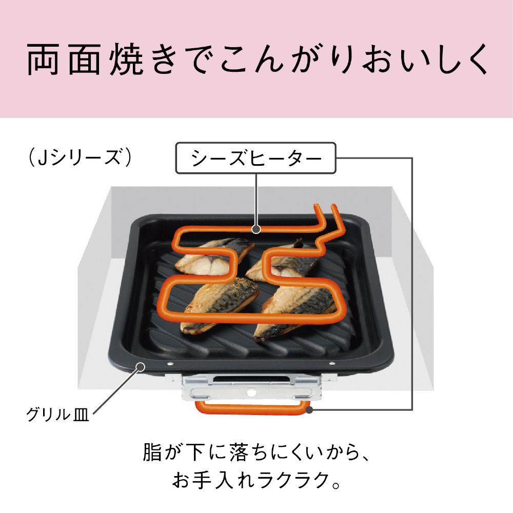 主な仕様・特長(グリル) 両面焼き(水なし)自動調理(焼き魚:3メニュー)