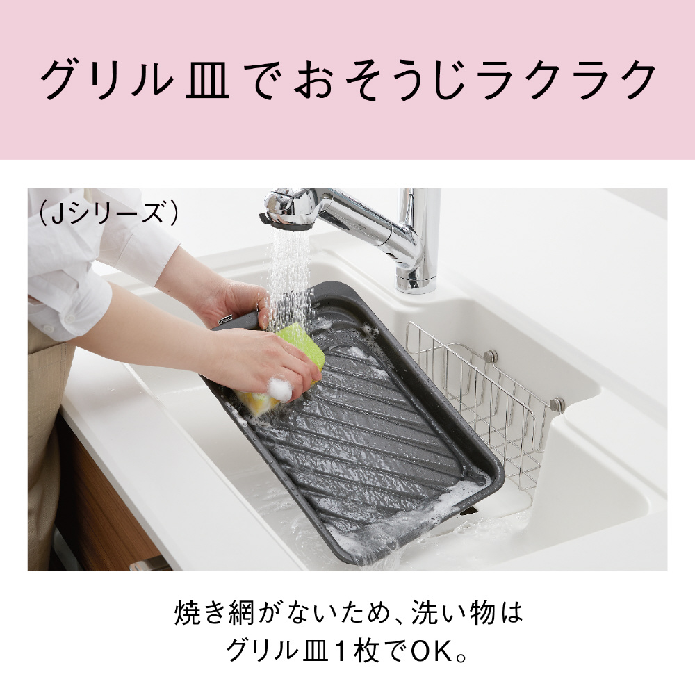 3.グリルは焼き網がなくお手入れ簡単 自動メニュー搭載のグリル皿タイプ