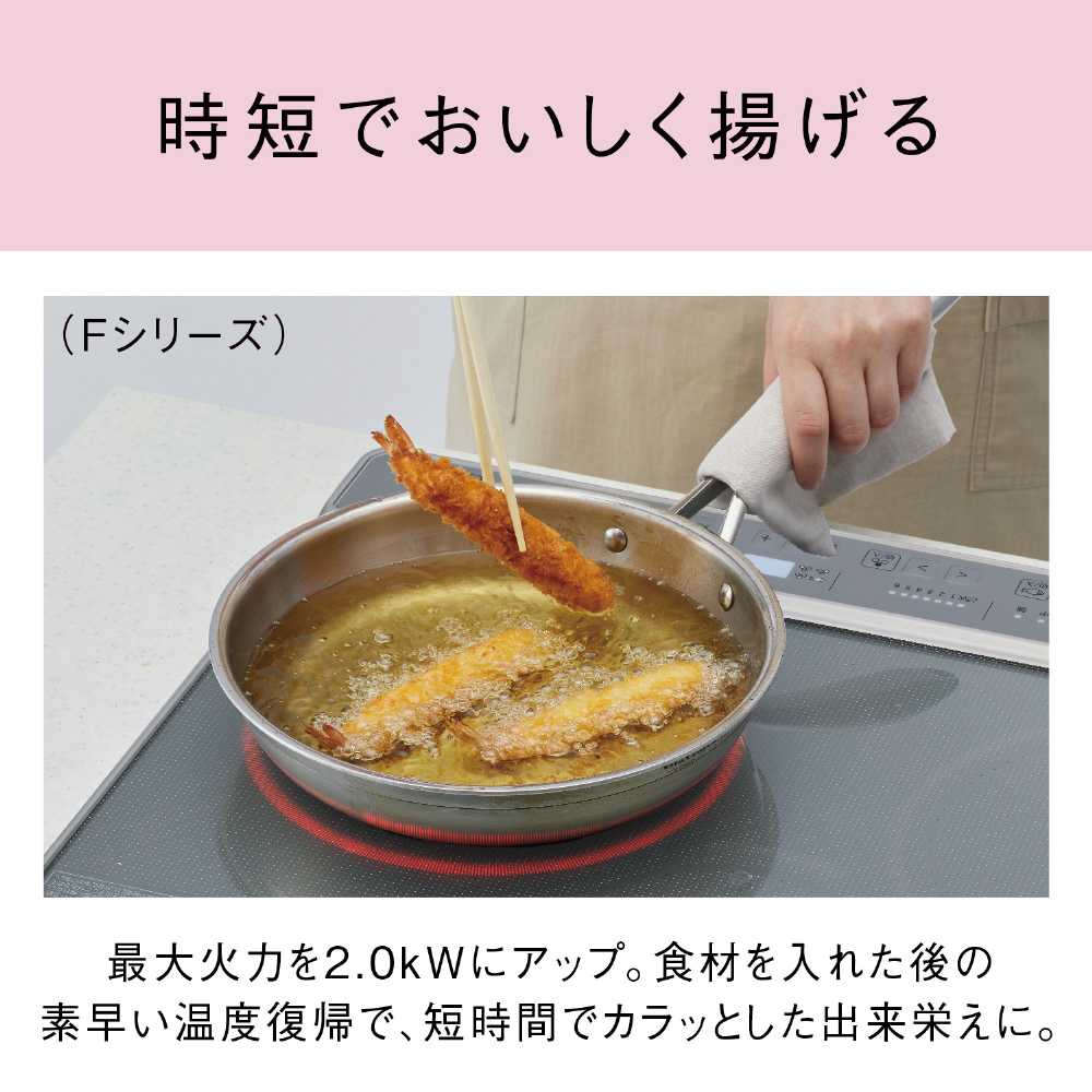 揚げ物調理時の最大火力を2.0kWにアップし、揚げ時間約17%短縮