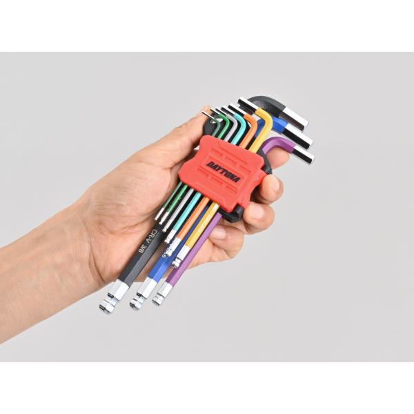 サイズ別に色分けされているので、使いたいサイズがひと目でわかるL型の六角レンチセット。