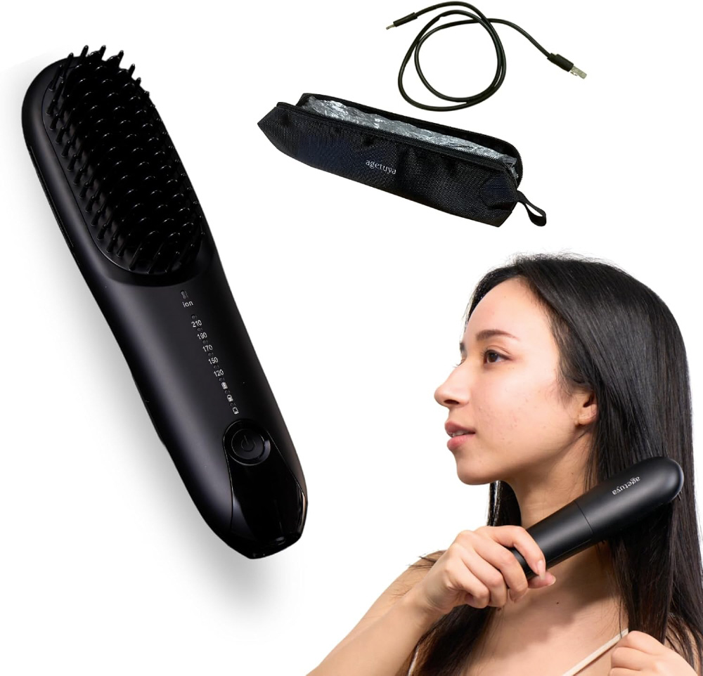 agetuya 独自のダブルアップピン構造 。長短交互の非発熱のピンが髪のもつれを細かくときほぐし、きめ細やかなストレートヘアを実現。