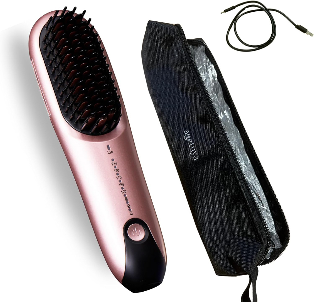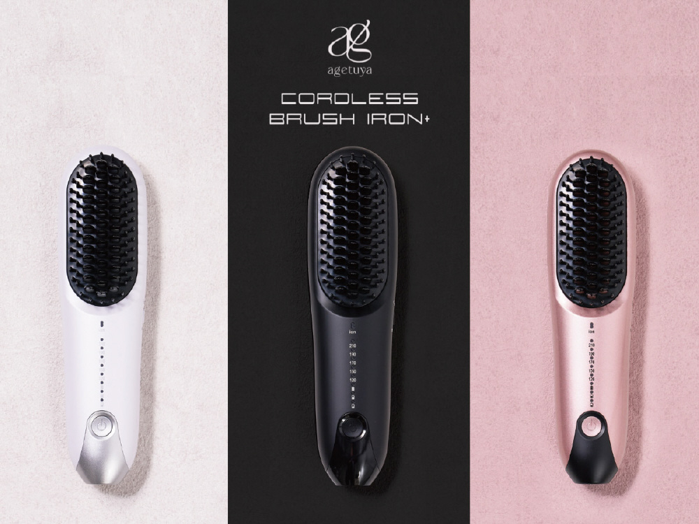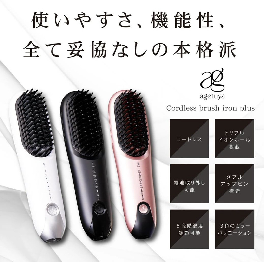 agetuya 独自のダブルアップピン構造 。長短交互の非発熱のピンが髪のもつれを細かくときほぐし、きめ細やかなストレートヘアを実現。