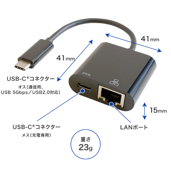 「有線LAN接続しながら充電もできるUSB-C変換アダプター」