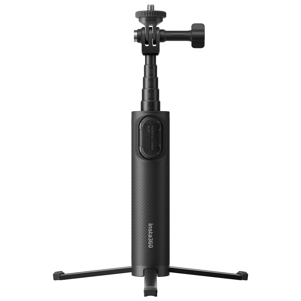 ・全てをひとつにした自撮り棒。自撮り棒として使うことも、内蔵三脚を広げて使うことも