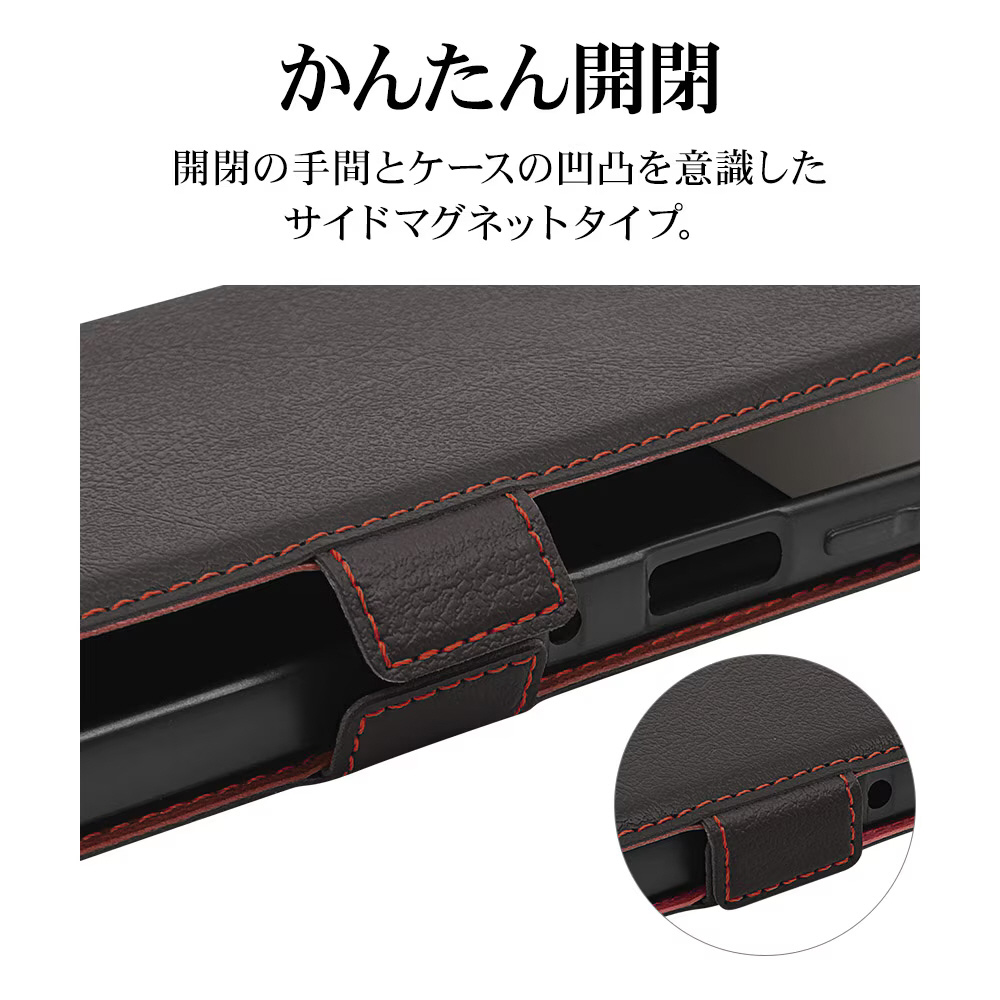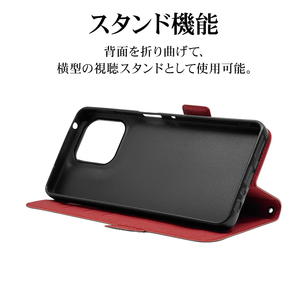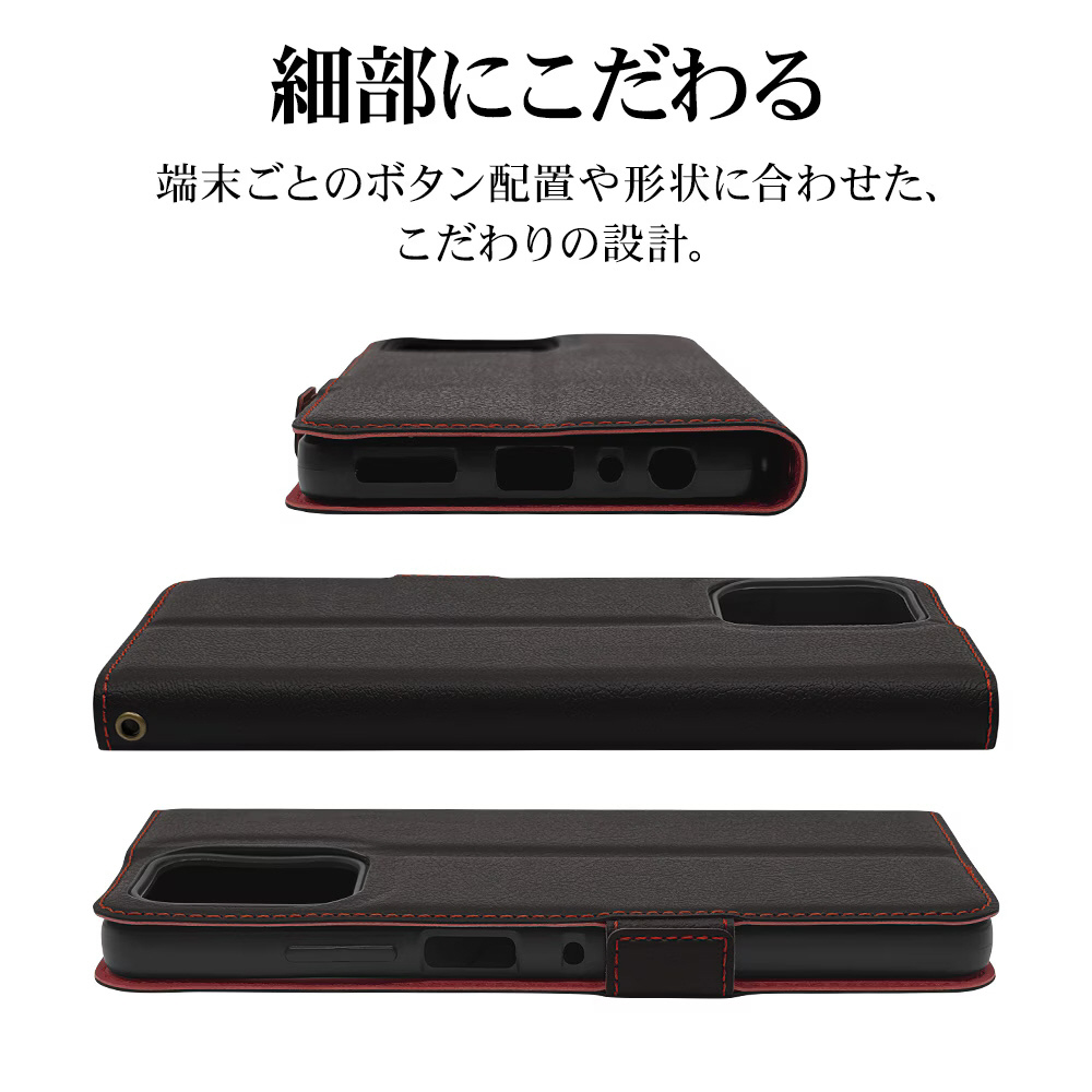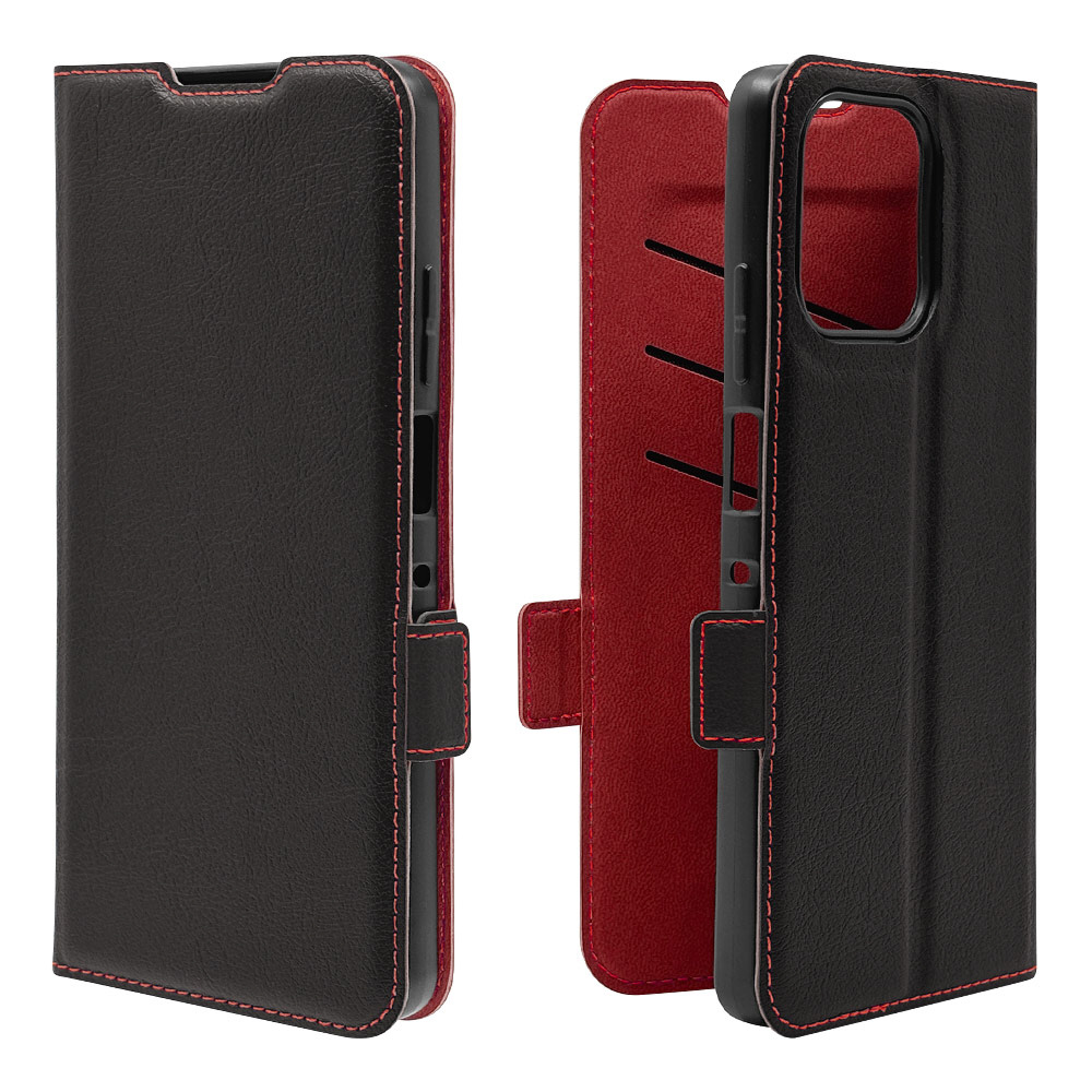moto g66j 5G/g66y 5G 薄型手帳サイドマグネットケース ブラック×レッド 9217MG66JBSMBKR