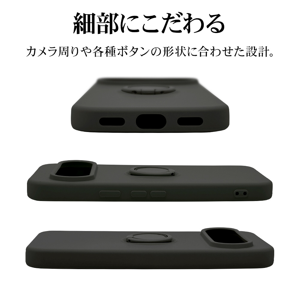 さらさら質感で指紋が付きにくいTPU素材の、落下防止リング付き背面ケースです。