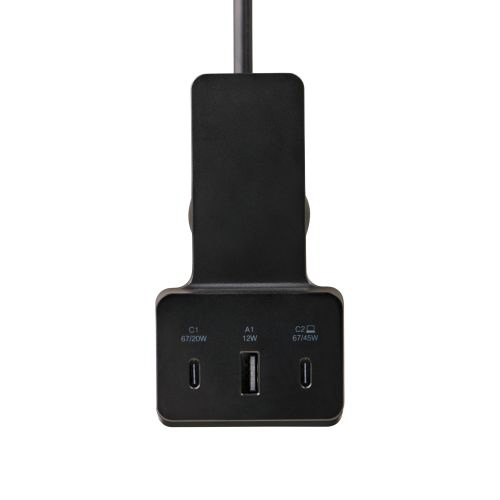 67W 充電器 一体型ケーブル2m USB Type-C ×2 USB-A ×1 高出力 PD/PPS対応 クリップ式固定 折りたたみ式プラグ GaNII Plus採用 iPhone MacBook Android対応 PSE適合 MPA-AC11867BK