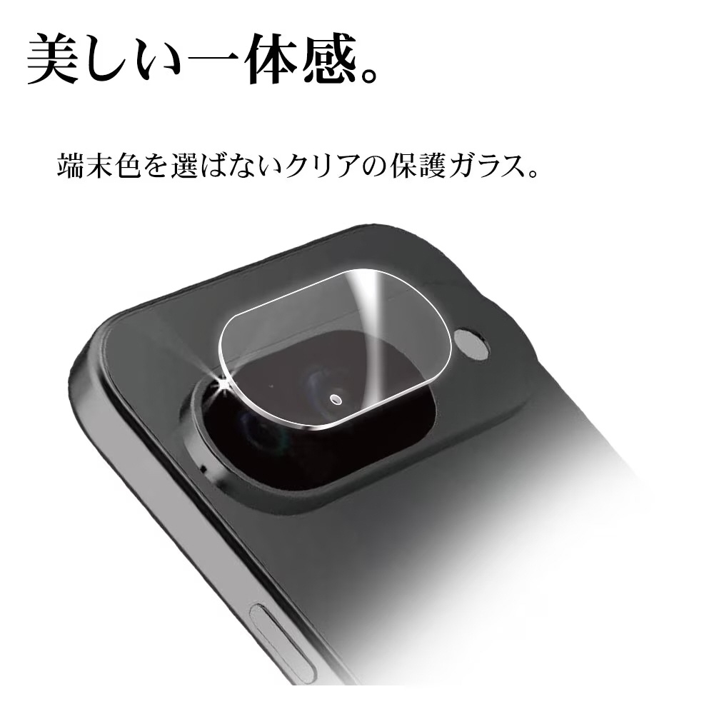端末色を選ばない一体感と、カメラを傷から守る光沢ガラスです。