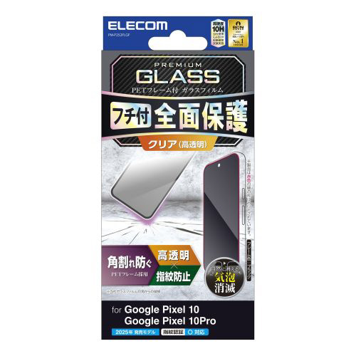 Google Pixel 10 / 10 Pro ガラスフィルム 画面内指紋認証対応 高透明 全面保護 強化ガラス 表面硬度10H 角割レ防止 フレーム付 指紋防止 気泡防止 飛散防止 ブラック PM-P252FLGF