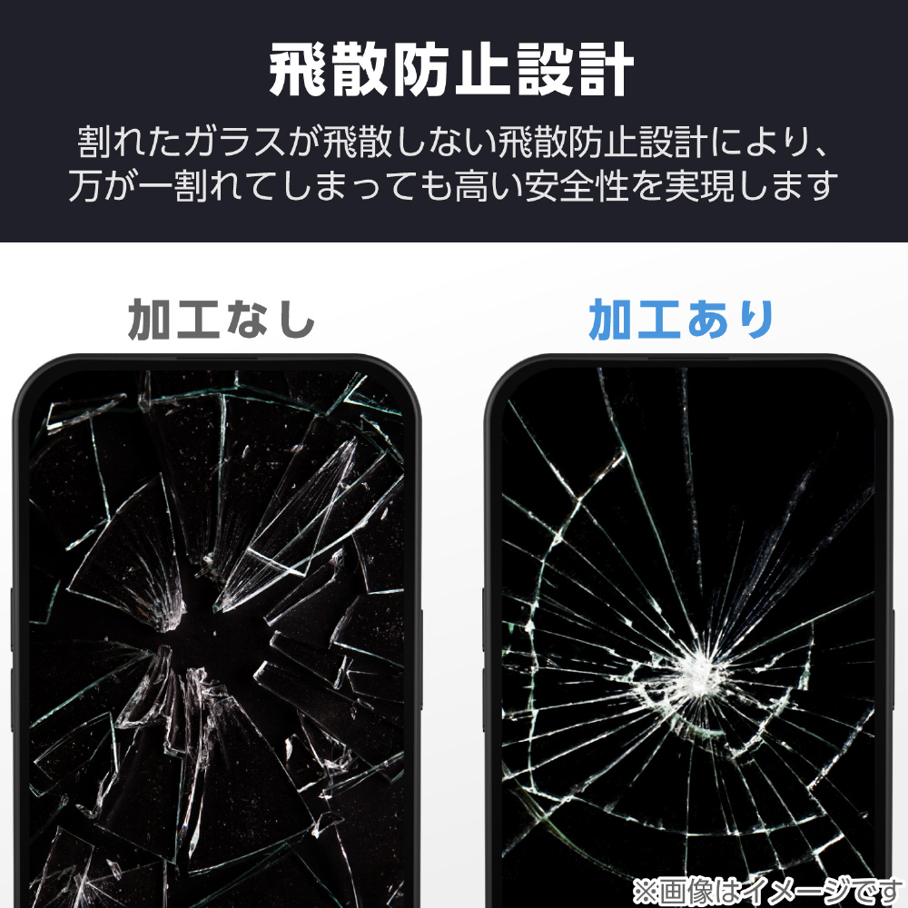 特殊な飛散防止設計により、万が一割れてしまった際にもガラス片が飛散することなく、高い安全性を実現しています。