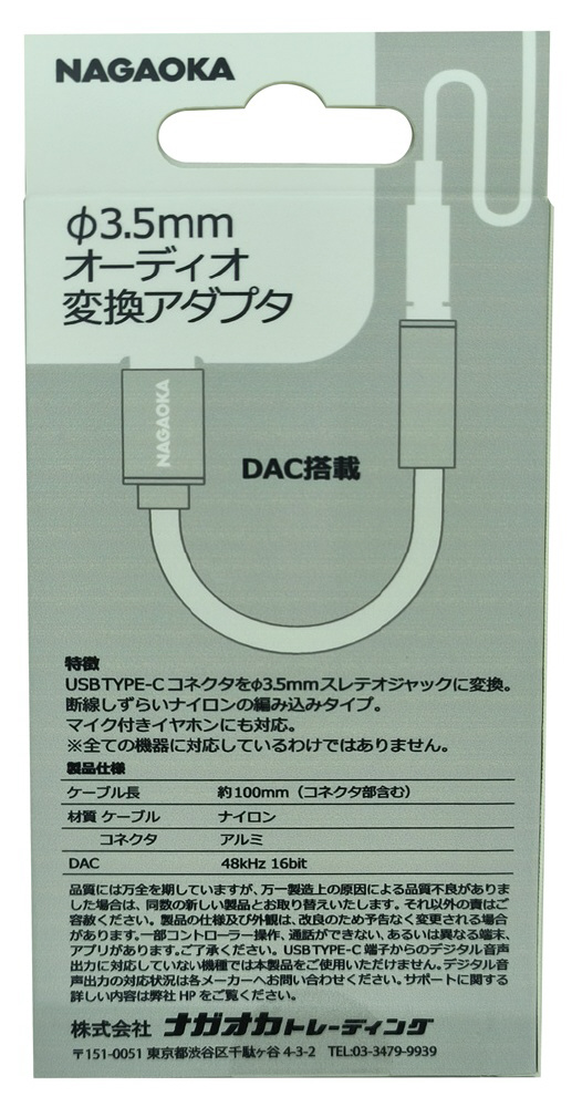 3.5mmジャックのヘッドフォン・イヤホンをUSB Type-Cコネクタのスマートフォン等で使用できる変換ケーブルです。