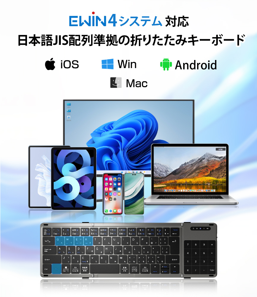 高級感あるレザー調デザインのEWIN三つ折りキーボードは、スタイリッシュで持ち運びやすい設計。Bluetooth接続でWindows・MacOS・iOS・Androidに対応し、外出先でも快適にタイピング可能。