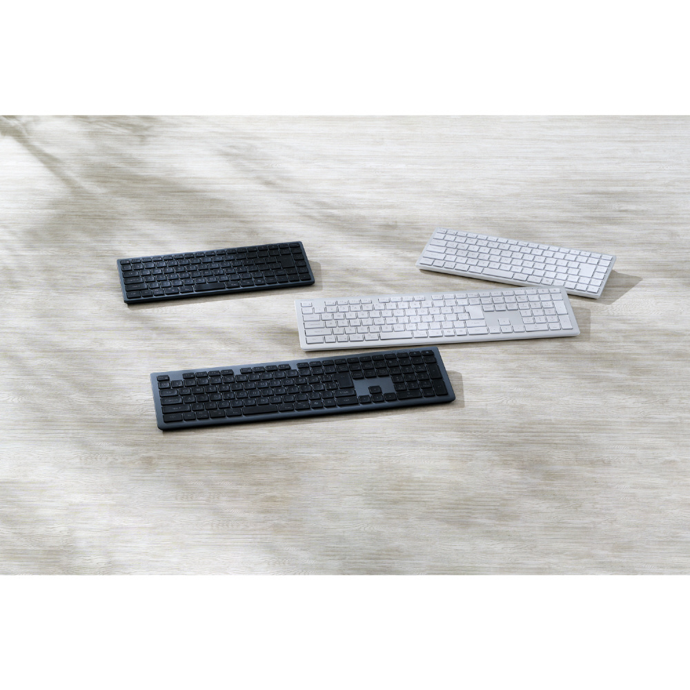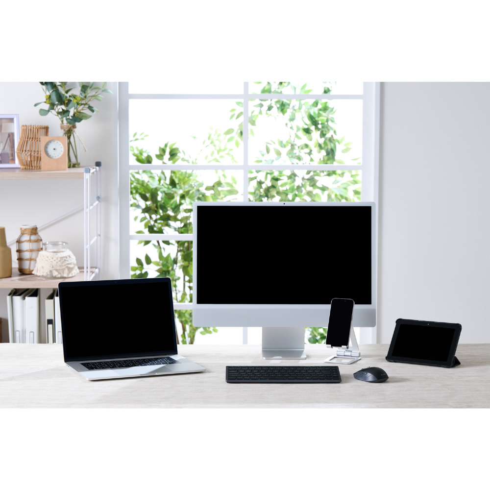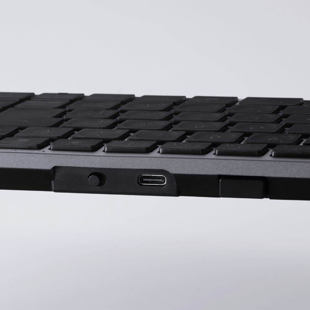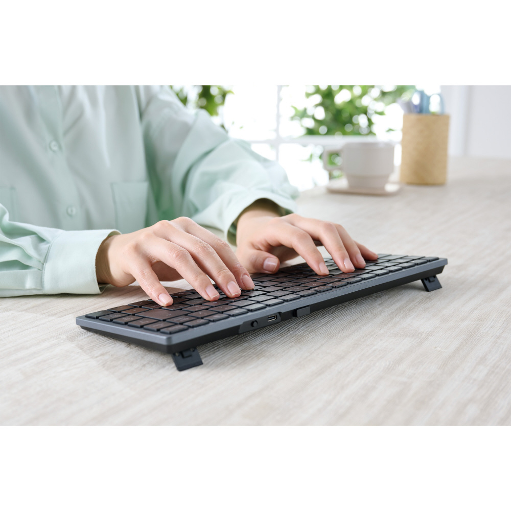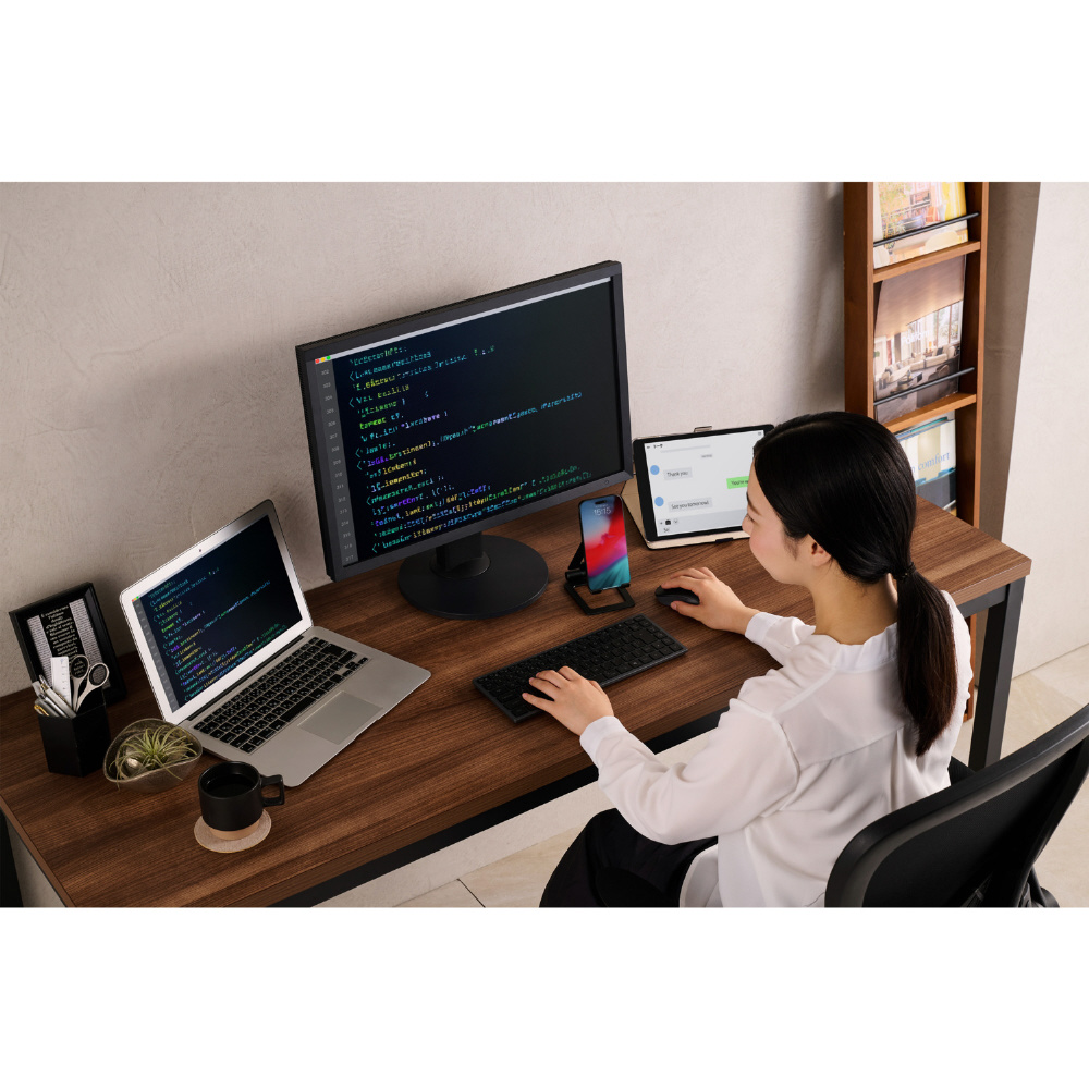 複数のデバイスをひとつのキーボードで操作可能。 最大4台のデバイスに接続できる、マルチペアリングに対応しています。 BluetoothR接続で3台、USB無線2.4GHzで1台まで接続機器を本体に保存でき、使用シーンに合わせてデバイスを瞬時に切り替えられます。