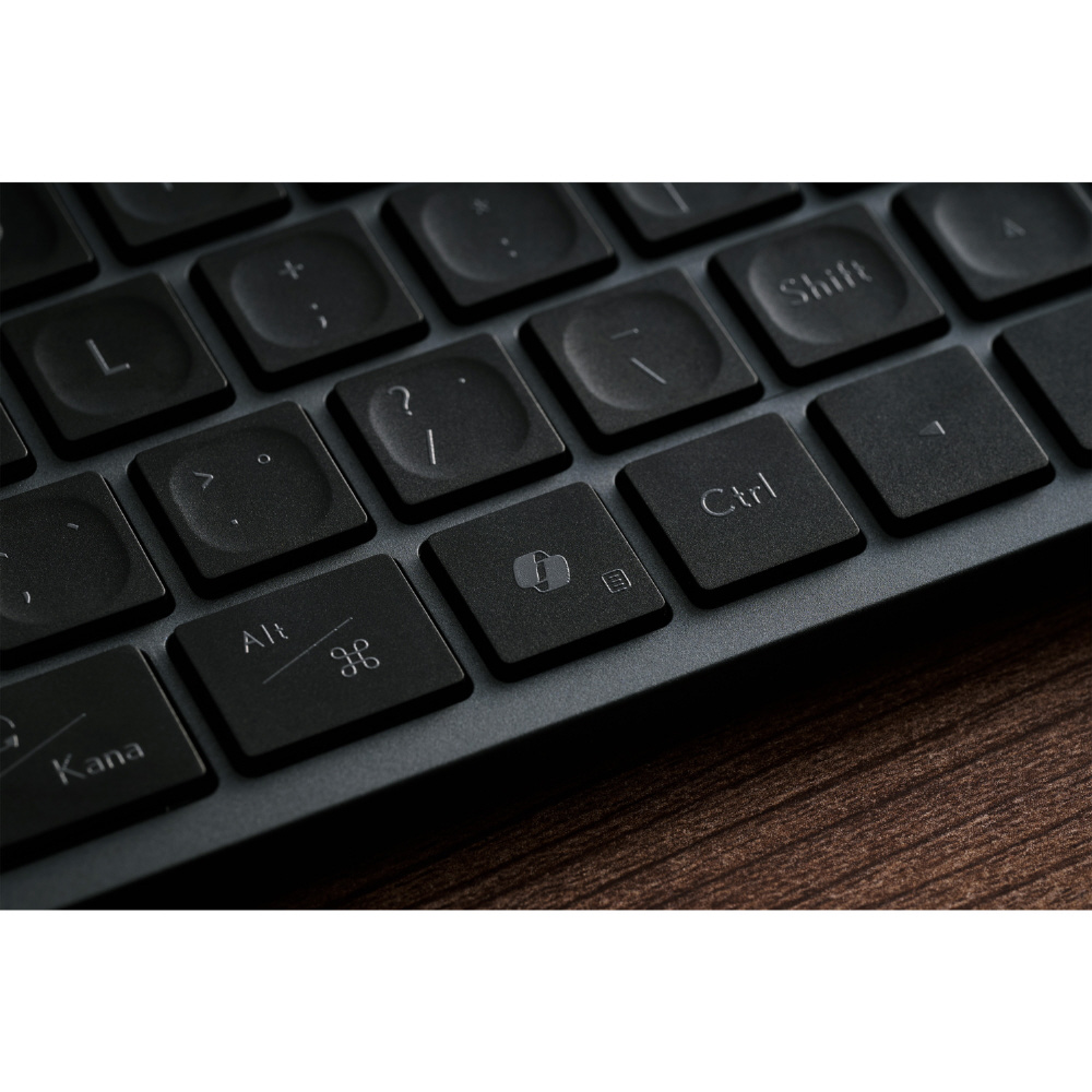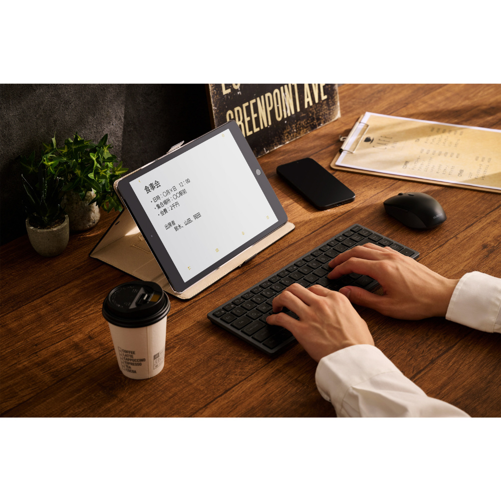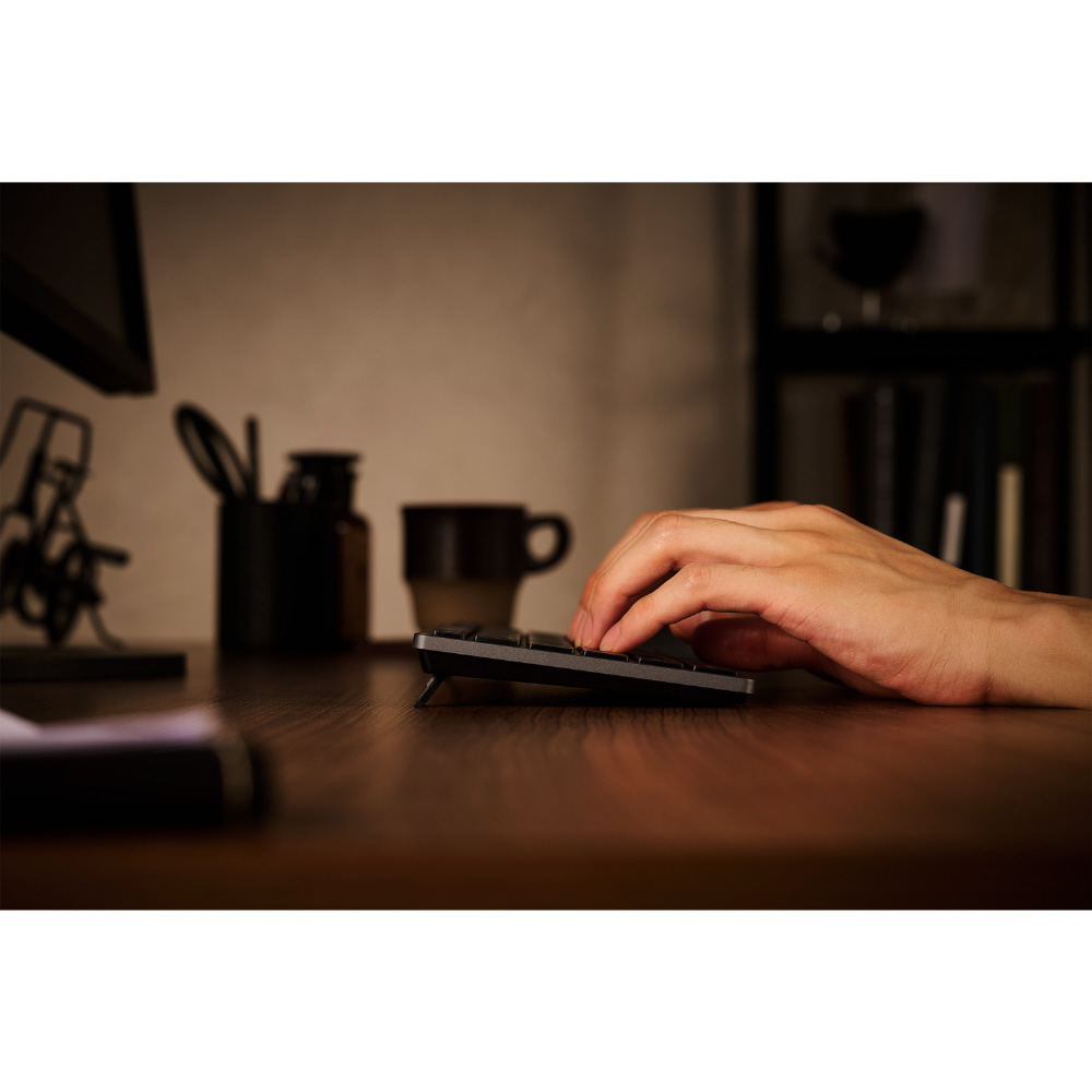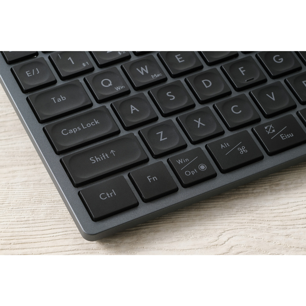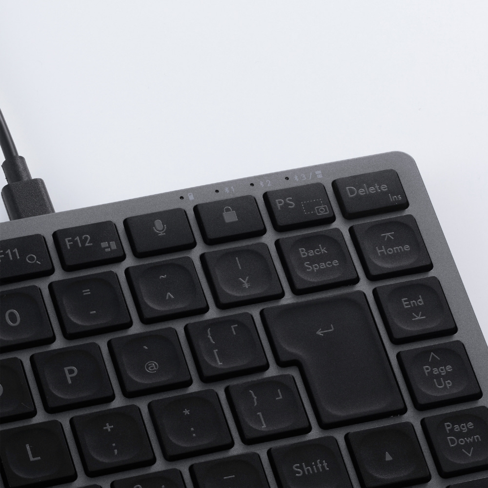 最薄部約8mmの超薄型設計に加え、かな表記を省いたシンプルなキー印字を採用。 モダンなデスクにも調和するスタイリッシュなデザインに仕上げました。