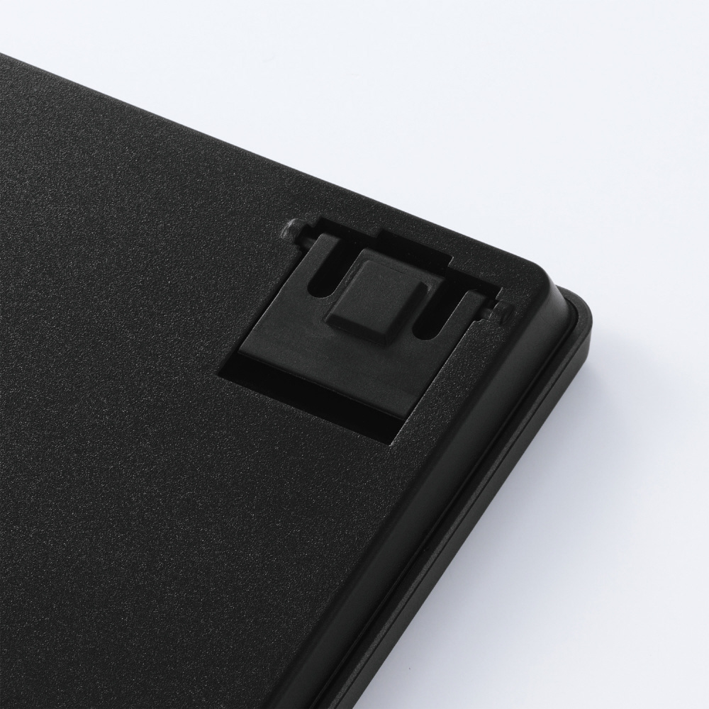 姿勢に合わせて傾斜角を2段階で調整できる角度調整スタンドが付いています。 スタンドにはキータッチを安定させる滑り止めが付いています。