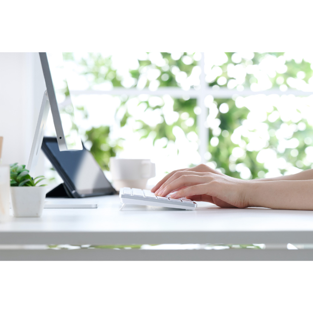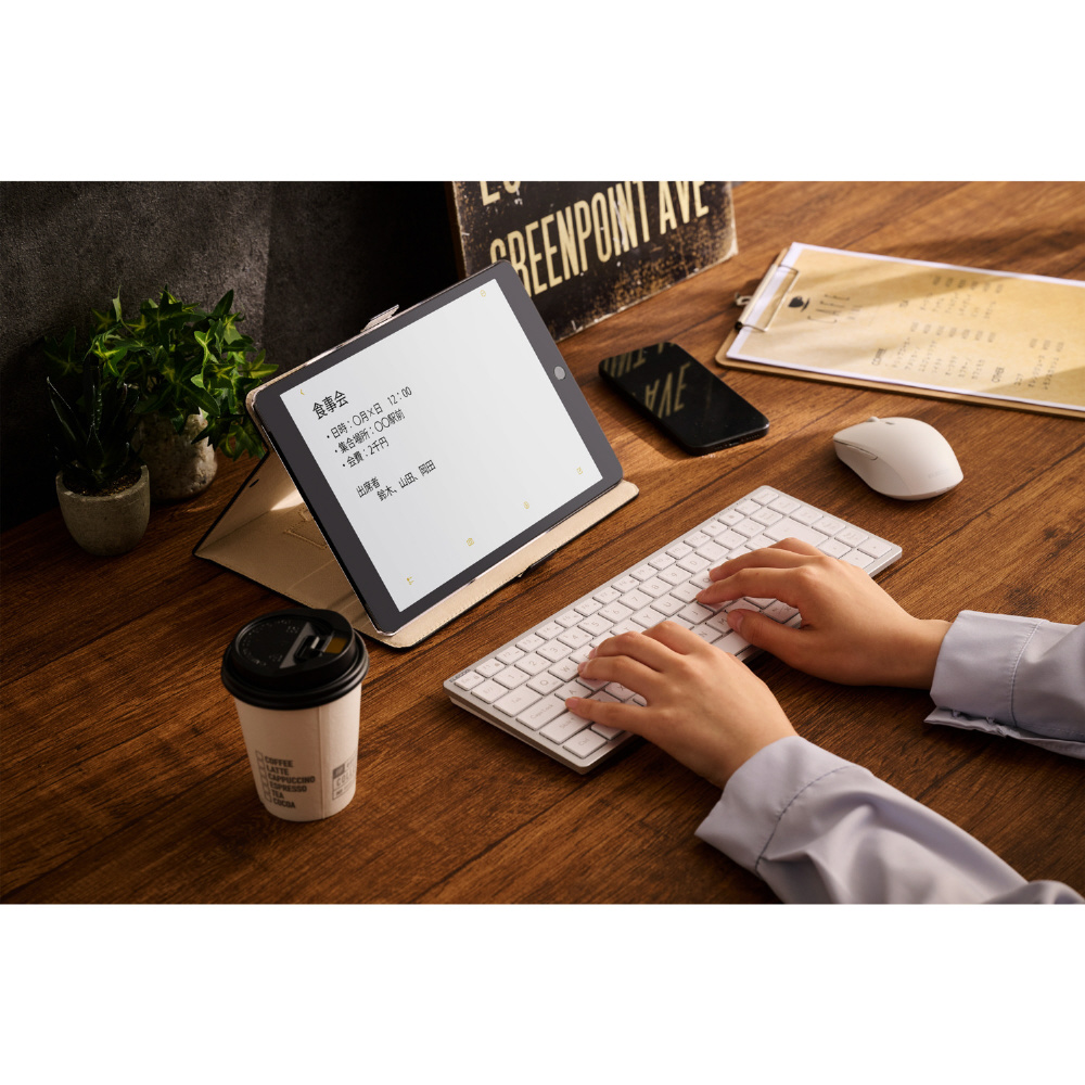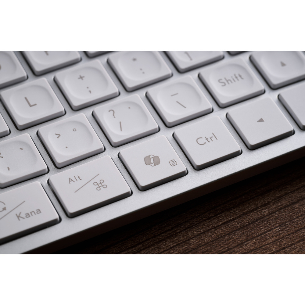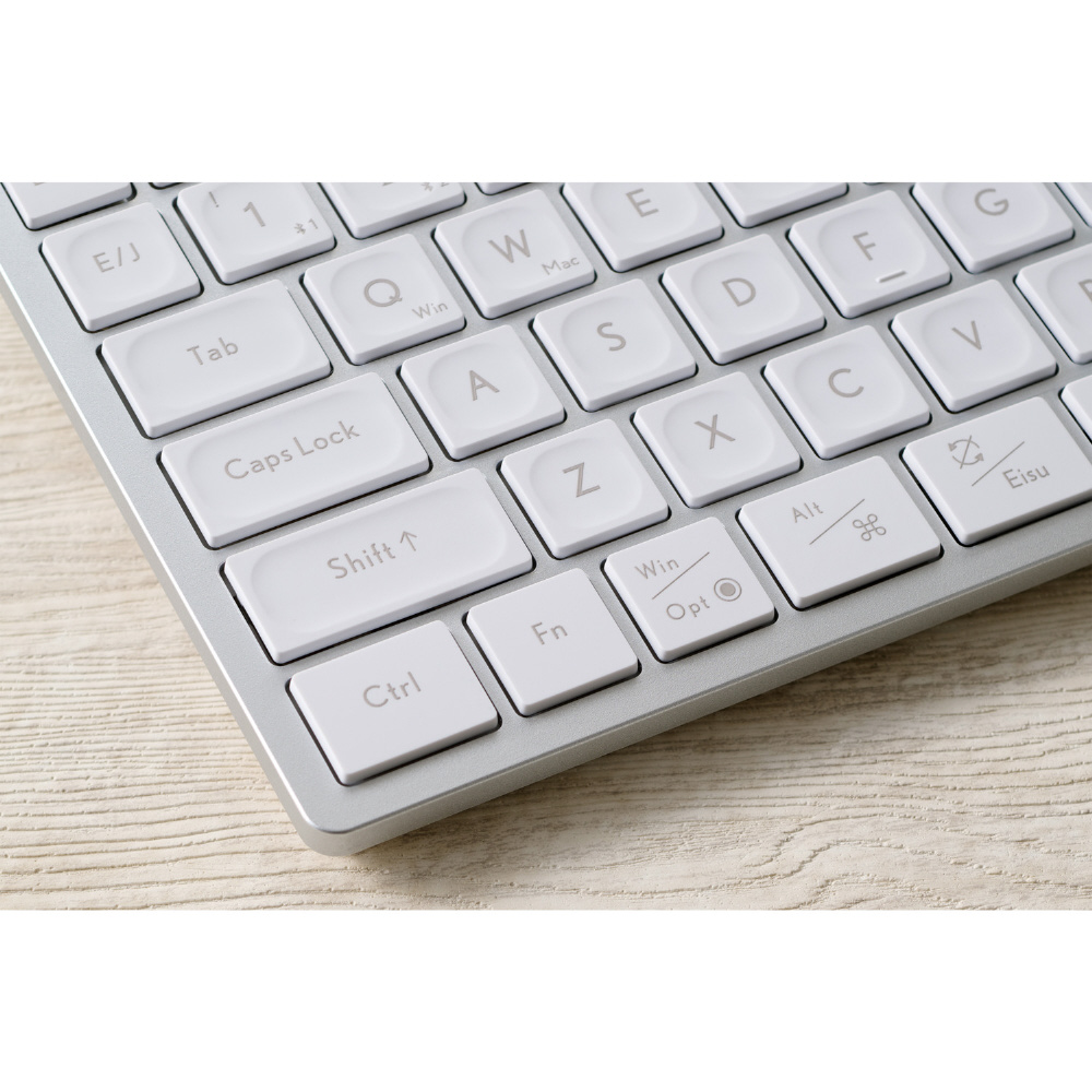 最薄部約8mmの超薄型設計に加え、かな表記を省いたシンプルなキー印字を採用。 モダンなデスクにも調和するスタイリッシュなデザインに仕上げました。