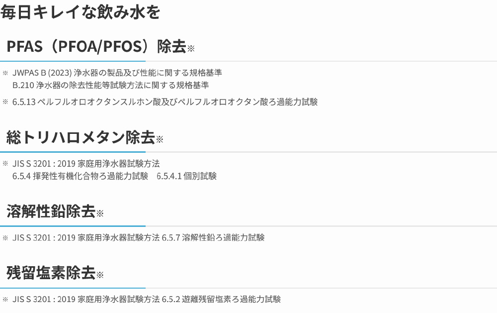 ※JWPAS B (2023) 浄水器の製品及び性能に関する規格基準