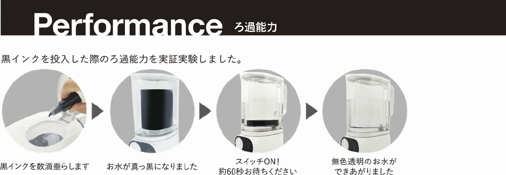 〇圧倒的なろ過スピード(1.5Lをおおよそ2分間で浄水※)
