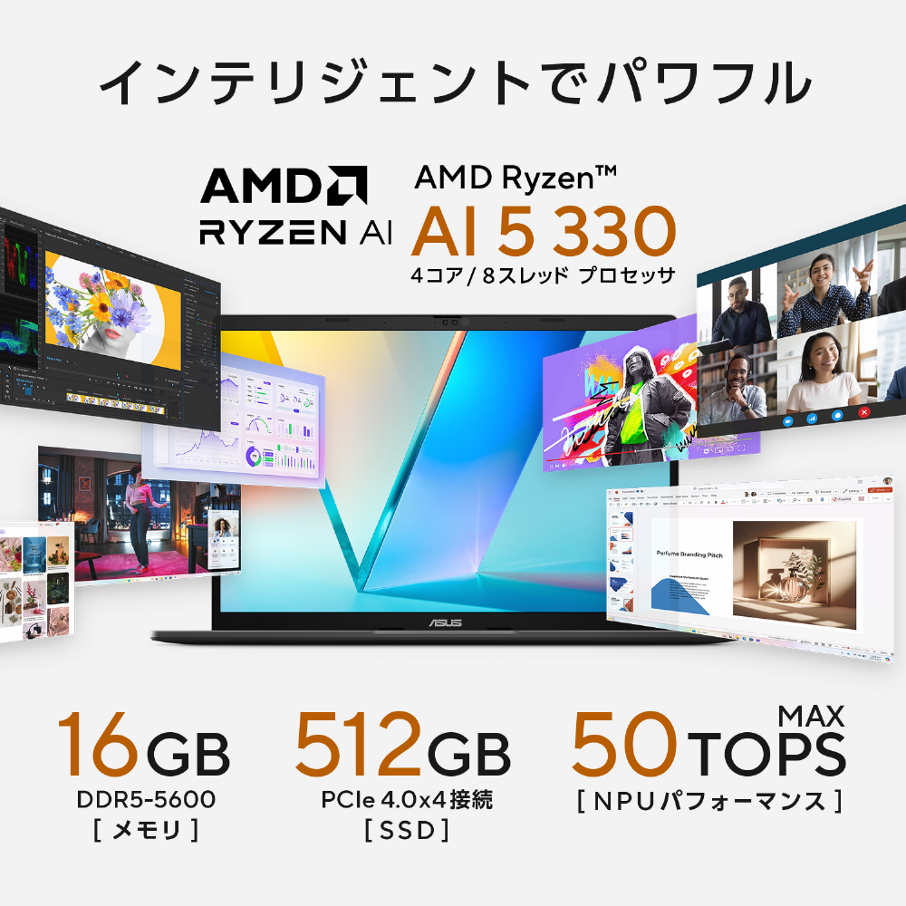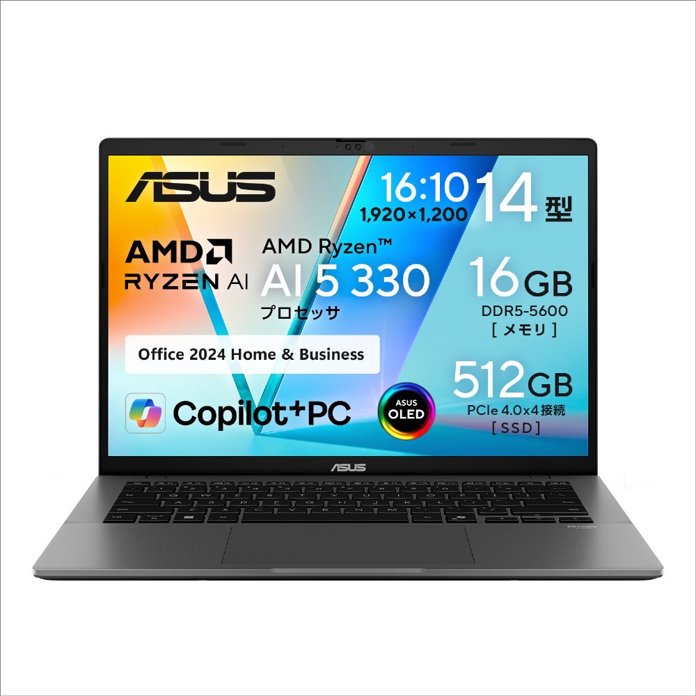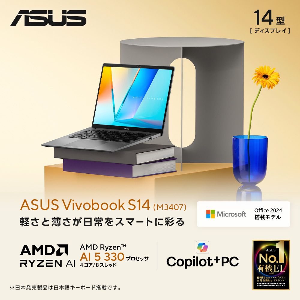 ノートパソコン Vivobook S14 (M3407) マットグレー M3407KA-AI5165GRS [14.0型 /Windows11 Home /AMD Ryzen AI 5 /メモリ:16GB /SSD:512GB /Office Home and Business /日本語版キーボード /2025年8月モデル]
