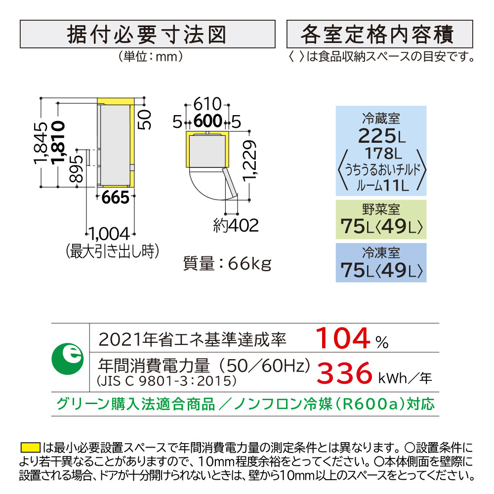 年間消費電力量 336kWh/年(JIS C 9801-3:2015)