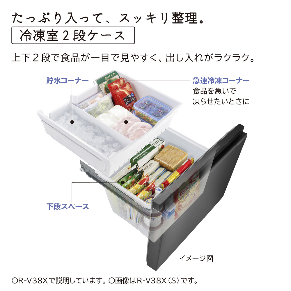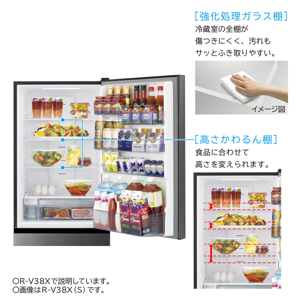 冷蔵庫 Vタイプ ライトゴールド R-V38X-N [幅60cm /375L /3ドア /右開きタイプ /2025年]