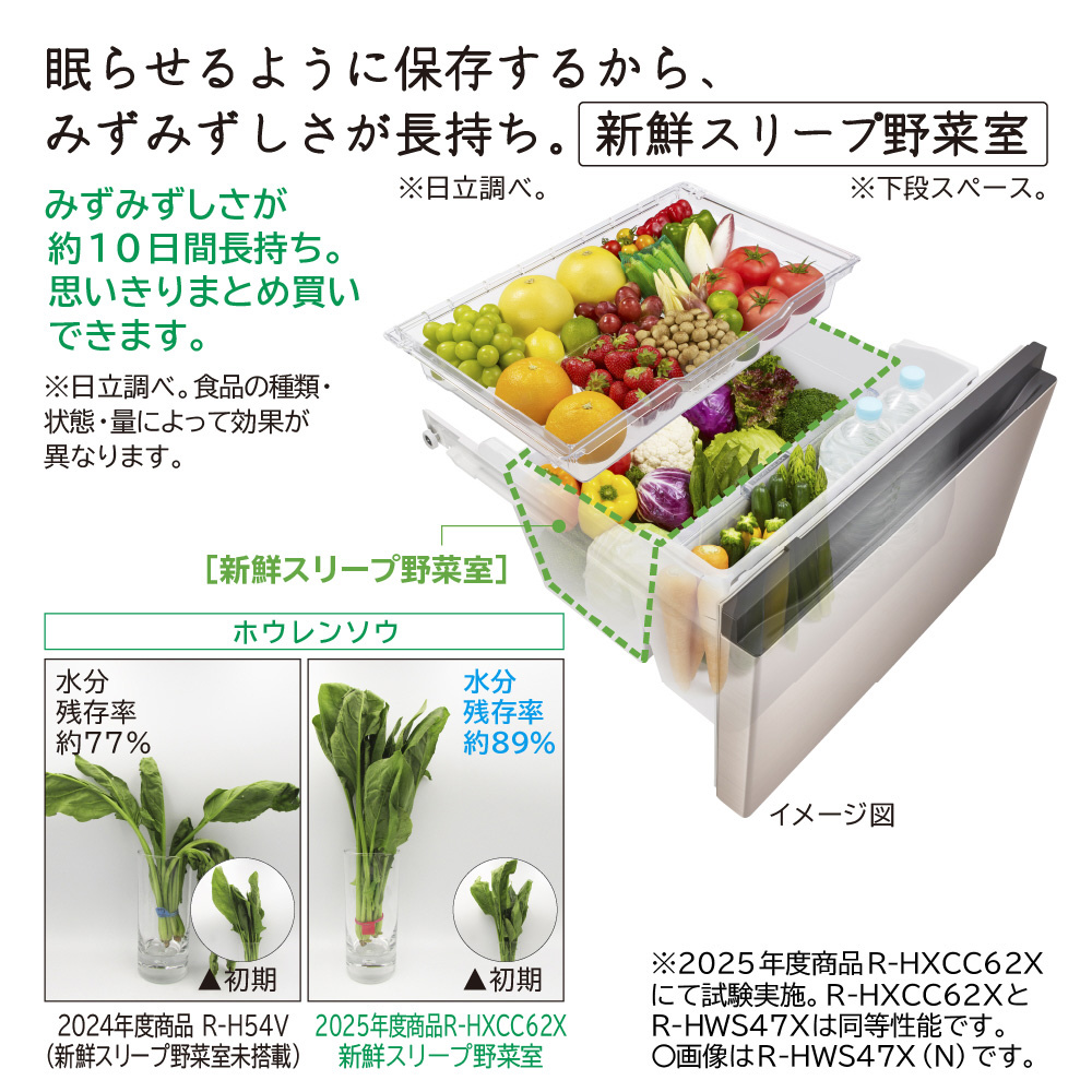 ※2 日立調べ。冷蔵庫の使用状況や、食品の種類・鮮度・保存場所などによって効果が異なります。