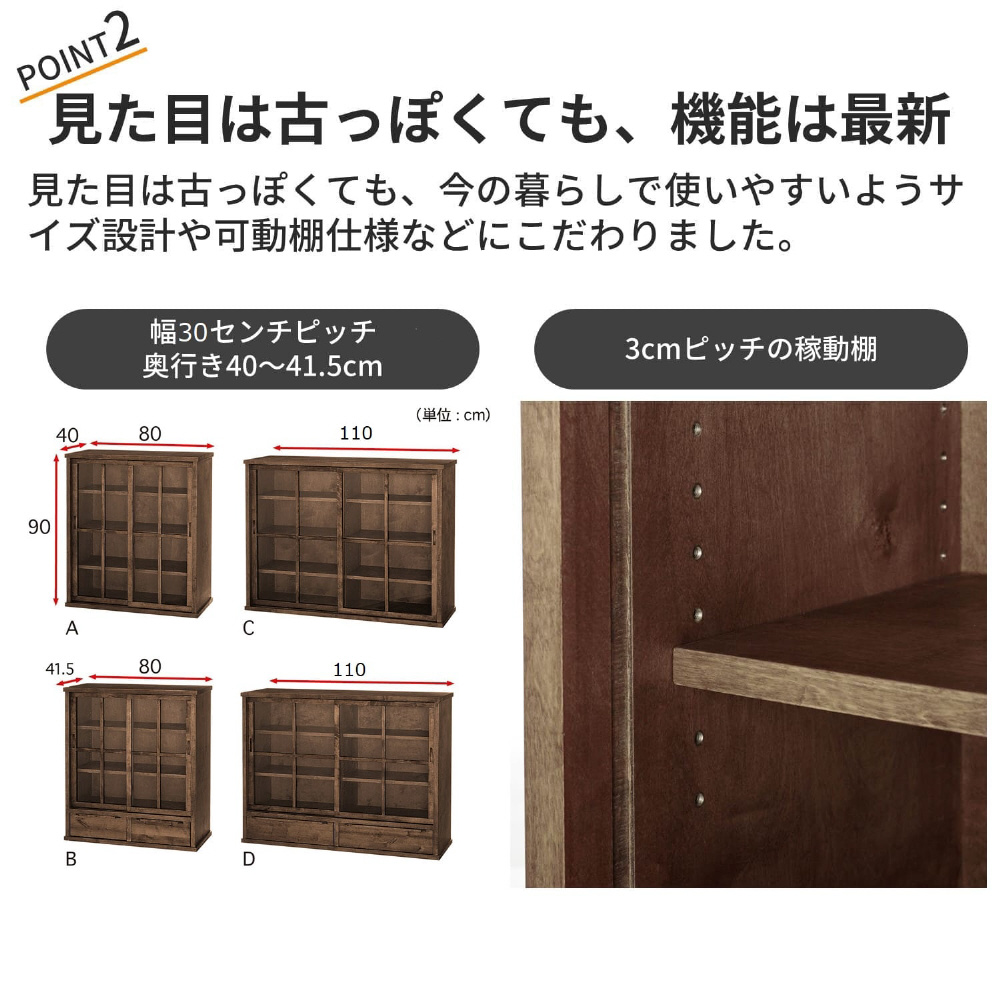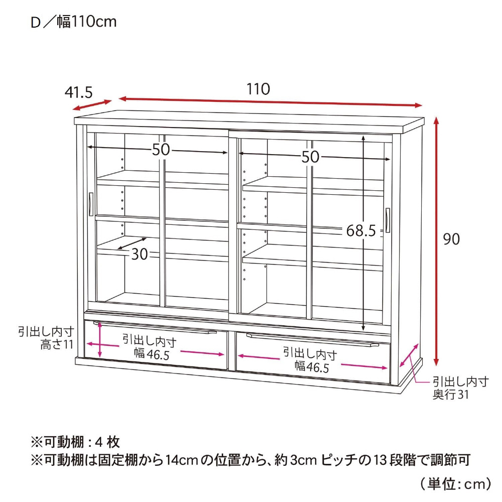 あたらしくて懐かしい 水屋箪笥風引戸キャビネット タイプ/幅(cm) D/110