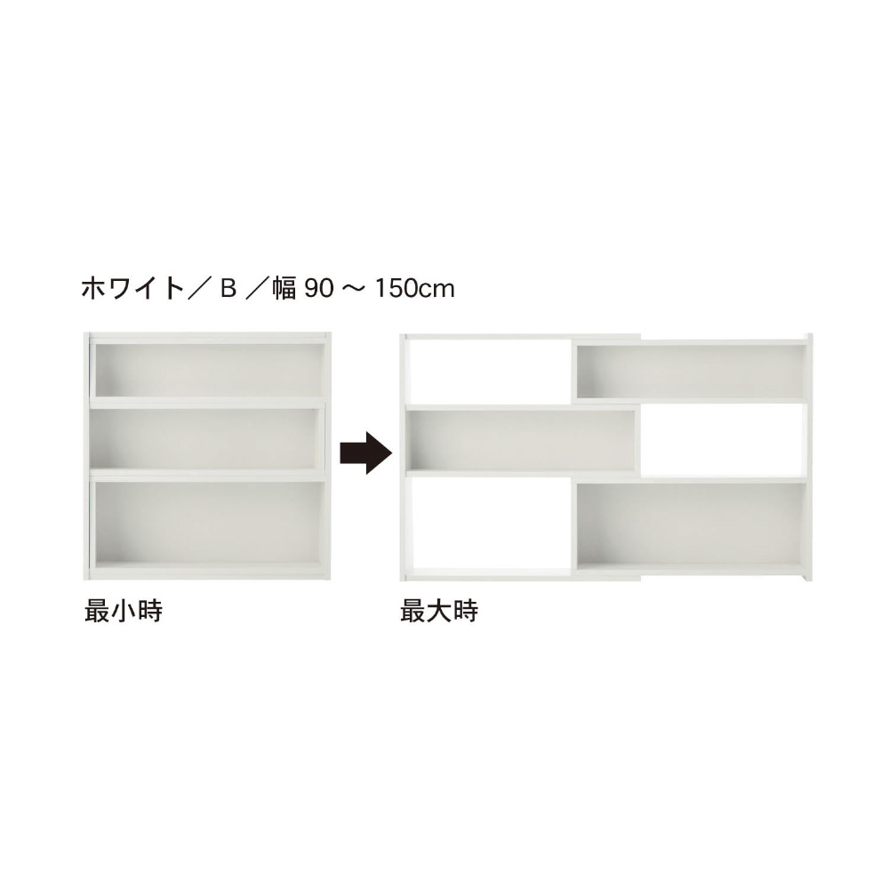 伸縮できる腰高本棚 タイプ/幅(cm) B/90〜150 ライトナチュラル