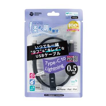 iPhone充電ケーブル Type-C to ライトニングケーブル 0.5m MFI認証 シリコーン素材 やわらかい 抗菌仕様 SIAA認証 ブラック OB-UCS2CL050-K