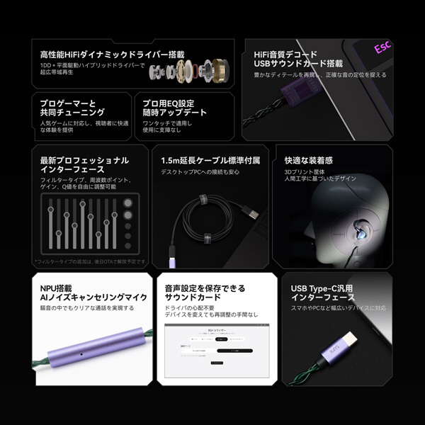 ■HiFi音響技術をゲーム用イヤホンに搭載