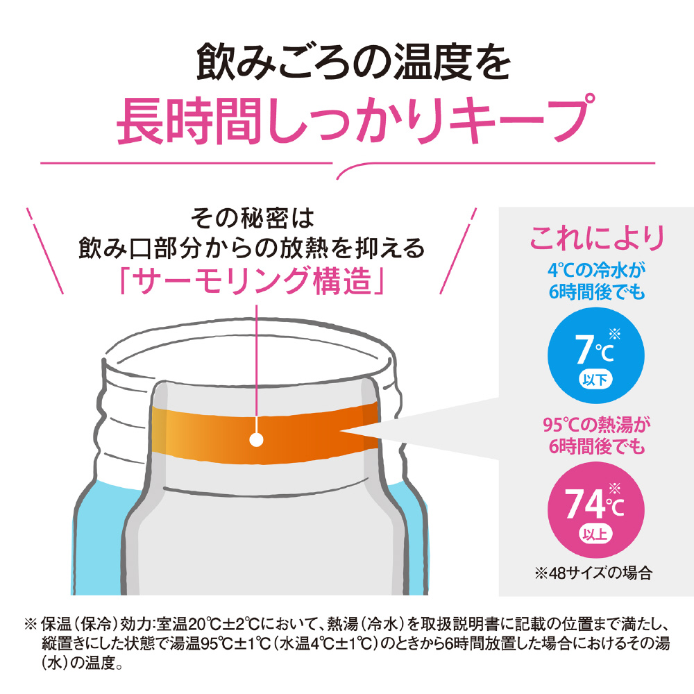 ・新構造で保温力UP!飲み口付近からの放熱を抑える「サーモリング構造」搭載。飲みごろ温度をしっかりキープ!