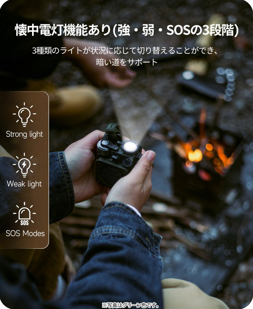 3.懷中電灯機能(強・弱・SOS信号)