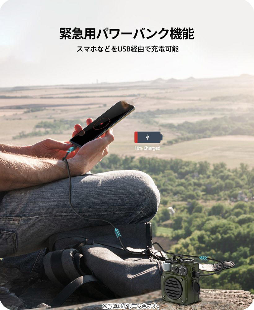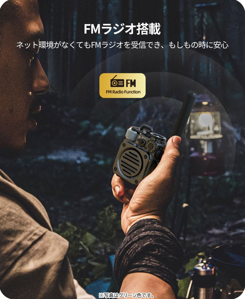 携帯圏外でも電波が届けばラジオが聴ける!アウトドアや防災用途での情報収集に重宝する新機能です。
