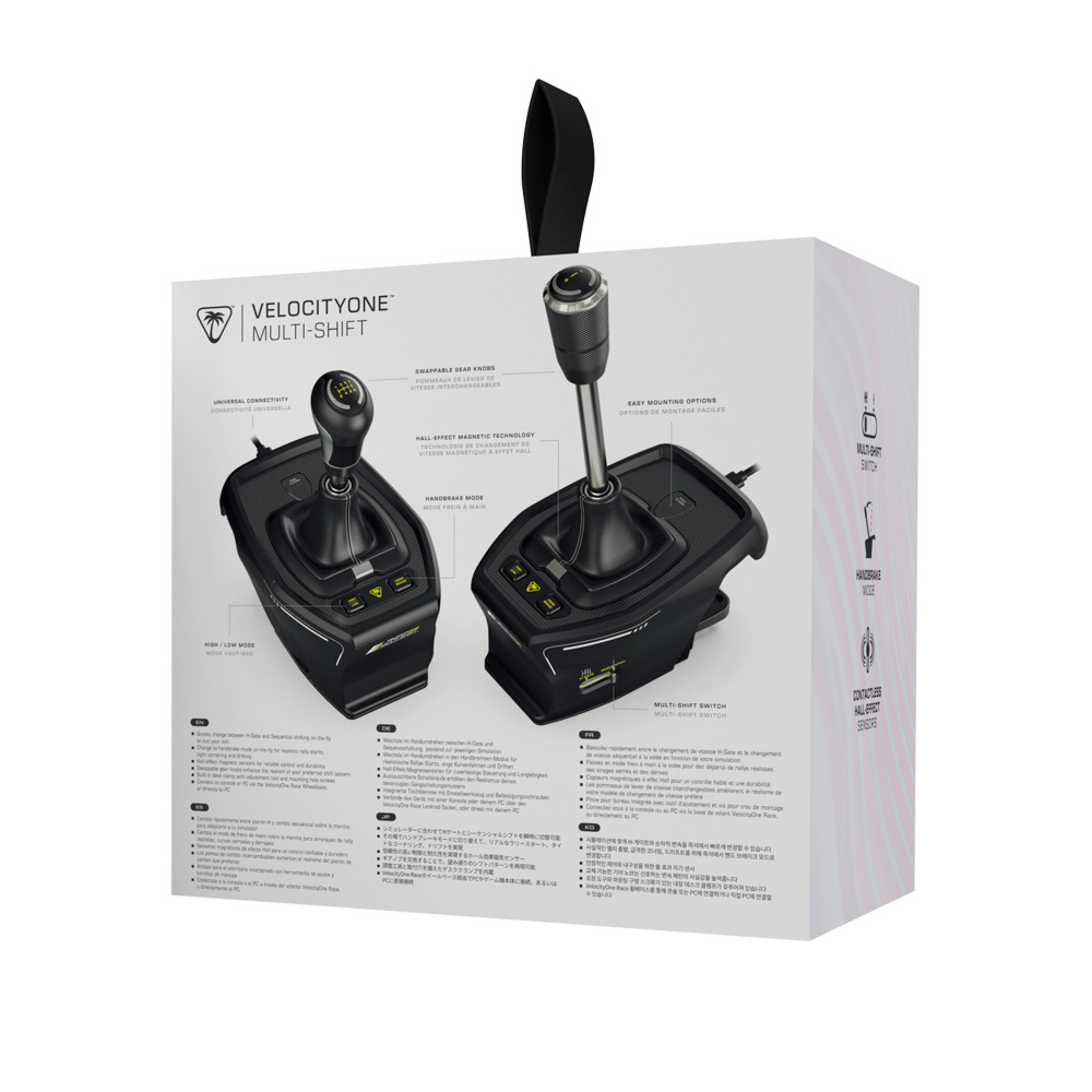 Turtle Beach VelocityOne Multi-Shift は、ハイエンドな素材と高度な調整機能により、どのようなシミュレーションにも対応できるように設計された高性能なレースシミュレーション用ギアシフト&ハンドブレーキモジュールです。