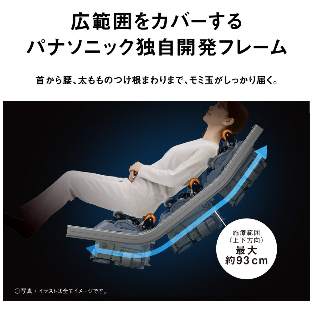 ・広範囲をカバーするパナソニック独自開発フレーム: 首から腰、太もものつけ根まわりまで、モミ玉が届く。