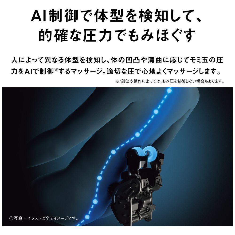 ・AI制御によるマッサージ: AI制御で体型を検知して、的確な圧力でもみほぐす。