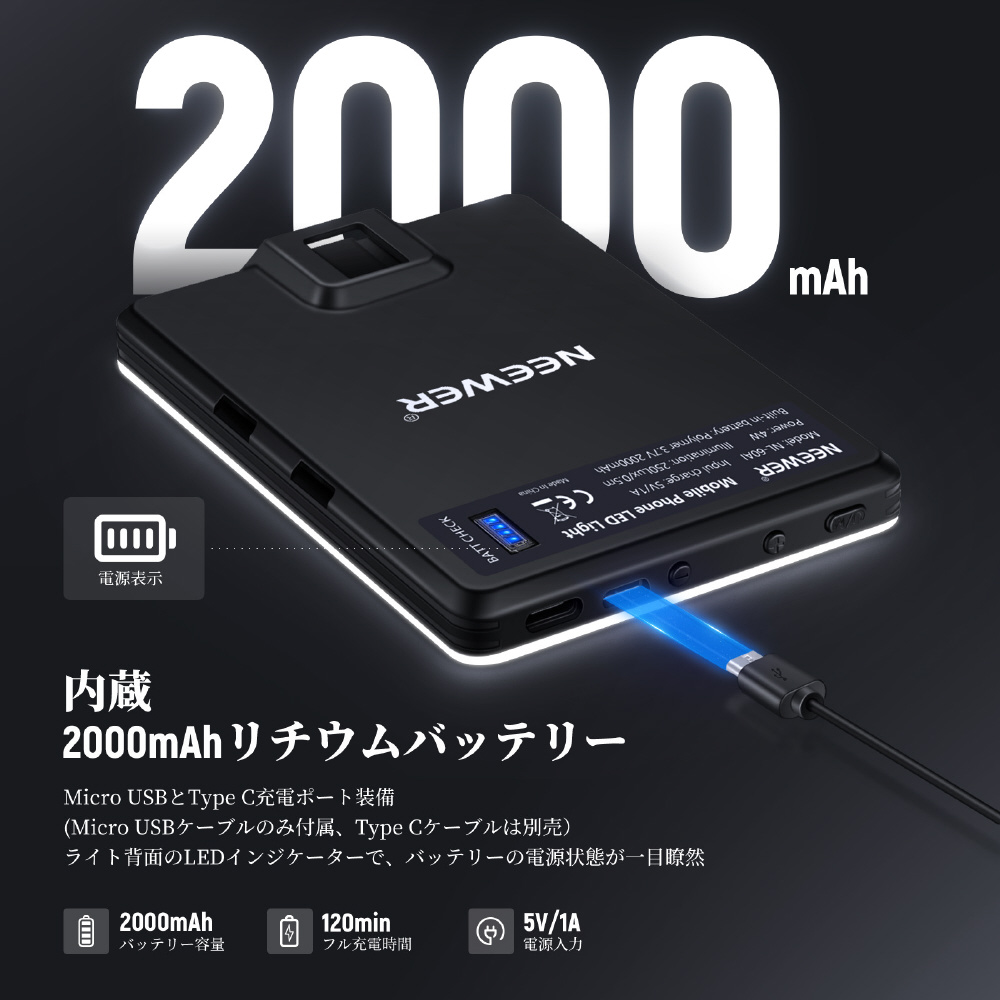 クリップ式 ライト /内蔵2000mAhバッテリー