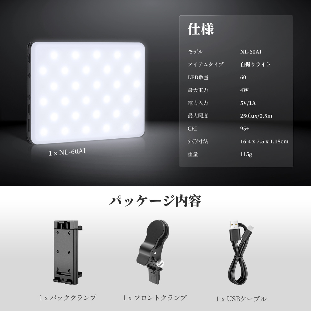 60個の高品質LEDを搭載