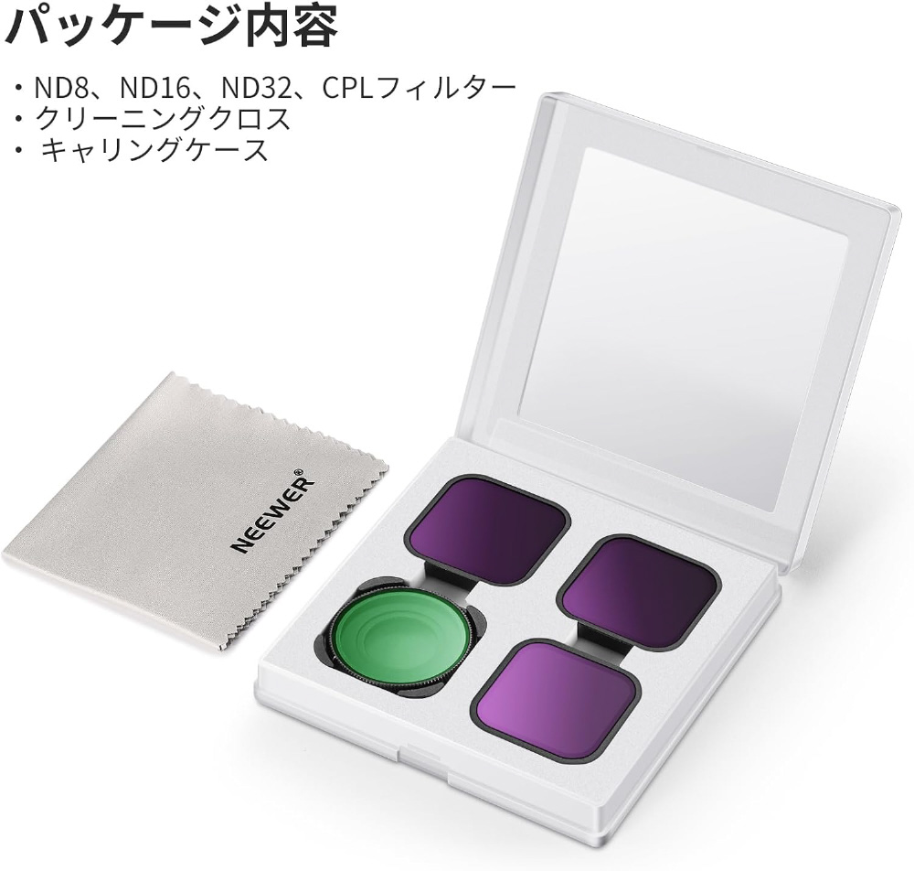 レンズフィルターセット内容 CPL、ND8.、ND1.6.、ND3.2..、保護フィルターケースを含み、コンパチブル Hero 1.1. Hero 1.0 Hero 9. Black。ねじ込み式でカメラレンズに取り付けるだけで、レンズを傷つけることなくフィットします。