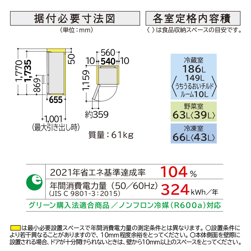 冷蔵庫 Vタイプ グラファイトシルバー [幅54cm /315L /3ドア /左開きタイプ /2025年]